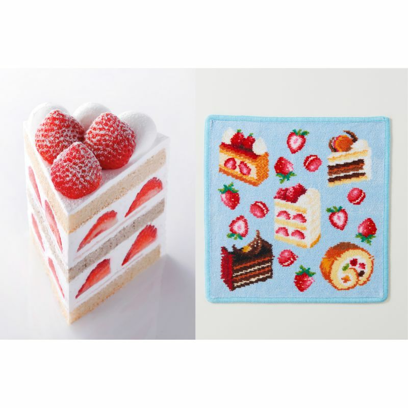 パティスリーSATSUKIの中でも人気の高いスイーツが大集合。ポイントのいちごやマカロンもかわいらしく散りばめ、ハンカチの縁どりカラー「アイボリー」「ピンク」「ターコイズブルー」の3色をご用意いたしました。絵柄にも入った 1ピースにつき約8粒の“いちごの王様”「博多あまおう」を使用した“究極のショートケーキ”新エクストラスーパーあまおうショートケーキとハンカチをセットでお愉しみください。 ・ハンカチサイズ:250mm×250mm