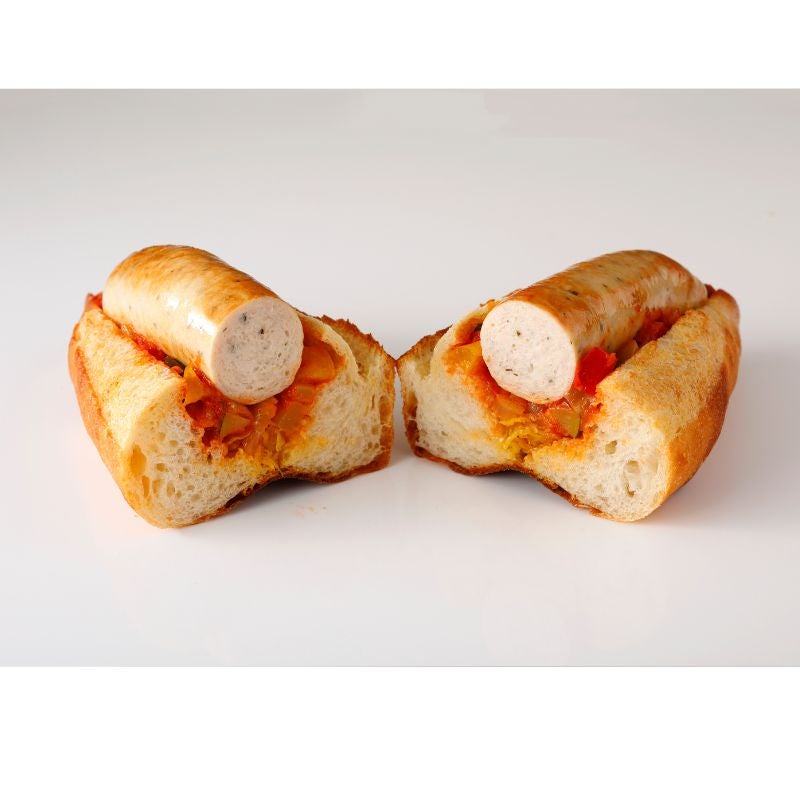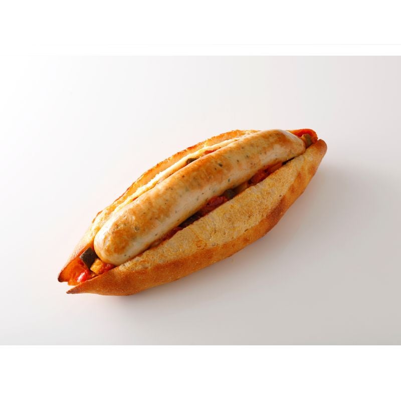 野菜の旨味を凝縮したラタトゥイユに、カレー風味のサワークラウトがアクセントを添える、ヘルシーなチキンソーセージを合わせた食べ応え抜群の新作ドッグ。