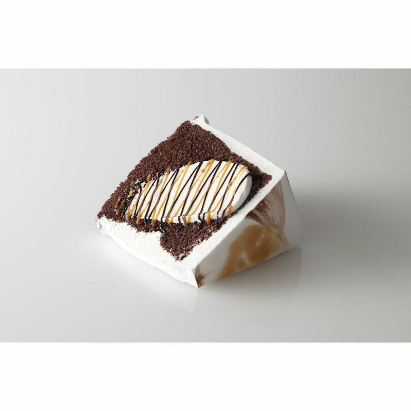 ふわふわのシフォンケーキに生クリームを添え、チョコレートソース、カラメルソースをかけたチョコレートシフォンケーキです。