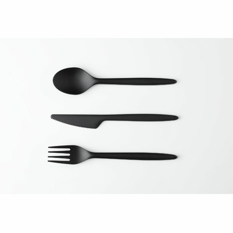 従来のプラスチックに比べより環境に優しい、トウモロコシなどの植物でんぷんからできるバイオプラスチックC-PLA 製品の、カトラリーです。