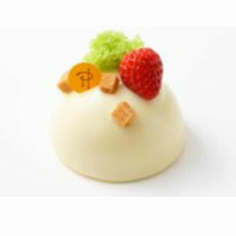 ライム風味ホワイトチョコレートムース、ルバーブのコンポート、イチゴのコンポート、ライムゼスト入りパッションフルーツ風味ビスキュイ、サブレブルトン